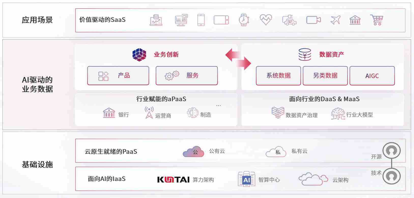 数字时代,,围绕企业数字化转型的关键要素,,PA国际厅数码开创性的提出数云融合战略和技术体系框架,,,,着力在云原生、、、、数字原生、、、AI原生和信创产业上架构产品和服务能力,,,为处在不同数字化转型阶段的快消零售、、、汽车、、金融、、、、医疗、、政企、、教育、、、、运营商等行业客户提供泛在的敏捷IT能力和融合的数据驱动能力,,,构建跨界融合创新的数字业务场景和新业务模式,,助力企业级客户建立面向未来的核心能力和竞争优势,,,,全面推动社会的数字化、、、智能化转型升级。。
