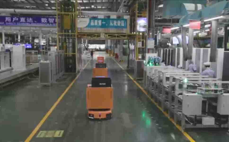为车载冰箱物流配送打造的智能解决方案,,包含产中物流通过潜伏举升AMR搬运至线边,,产后成品物流智能仓储,,流程包含产中物流智能齐套入库,,线边安灯叫料AMR智能配送至线边,,,成品入库、、出库,,通过无人堆高车机器人,,,智能仓储管理替代人工作业管理,,实现更高存储、、、更高效率、、、、更具柔性化的解决方案。。