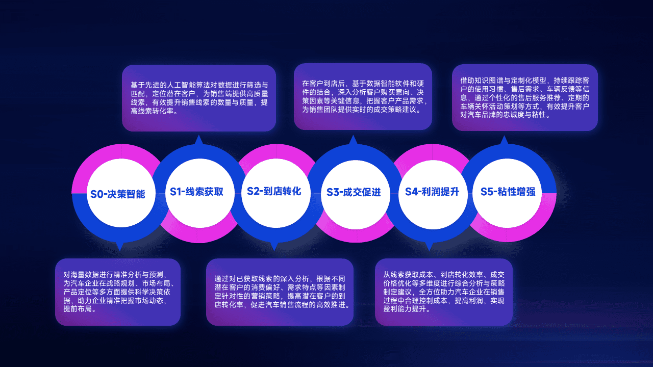 通过拓宽潜在客户来源、、、、优化线索分配并提高到店转化率,,,以增强销售效率。。。。同时,,,利用线索数据不断优化分析模型,,,,有效提升转化率,,,扩大营销影响力。。。